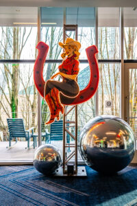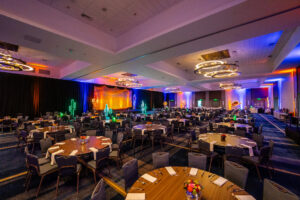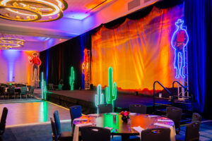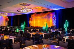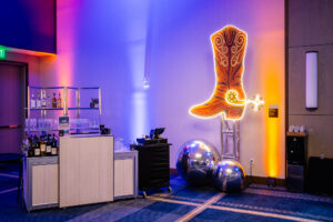 A bold Neon Cowboy–themed Winterfest for McKinstry at the Hyatt Regency Portland, featuring custom LED neon motifs, a themed photo booth, elegant drape installations, and budget-friendly centerpieces that brought vibrant energy to a polished corporate celebration.